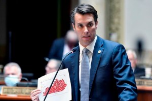 He stopped to talk to reporters about the need to get vaccinated against COVID-19.