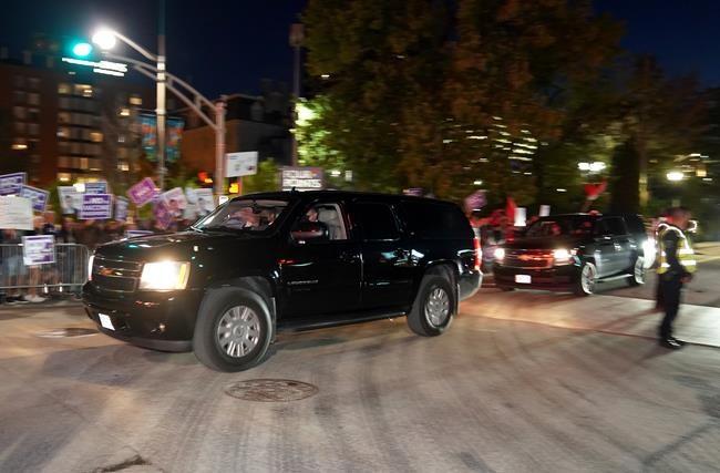 Liberal Leader Justin Trudeau has arrived at the Canadian Museum of History in Gatineau, Que., in a black SUV, surrounded by RCMP vehicles.