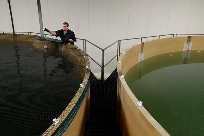 NEW YORK – Inside an Indiana aquafarming complex, thousands of salmon eggs genetically modified to grow faster than normal are hatching into tiny fish. After growing to roughly 10 pounds (4.5 kilograms) in indoor tanks, they could be served in restaurants by late next year.