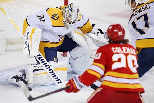 Former Flame Mark Jankowski and Roman Josi also scored for Nashville (4-6-1). Kevin Lankinen made 29 stops to earn the win for the Predators.
