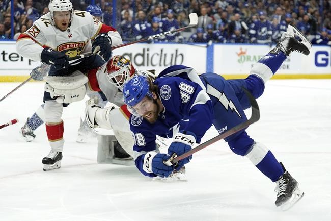 Barkov just missed answering Cernak’s goal that put the Lightning ahead 2-1, sending a shot from the right circle off the post. The Panthers also narrowly missed pulling even during a second-period power play that produced several chances, including Huberdeau’s wide-open look that McDonagh deflected up over the net with his stick.