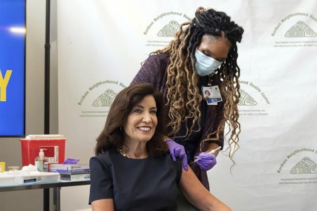 Hochul got the booster herself at her news conference in New York City and urged others to follow her example.