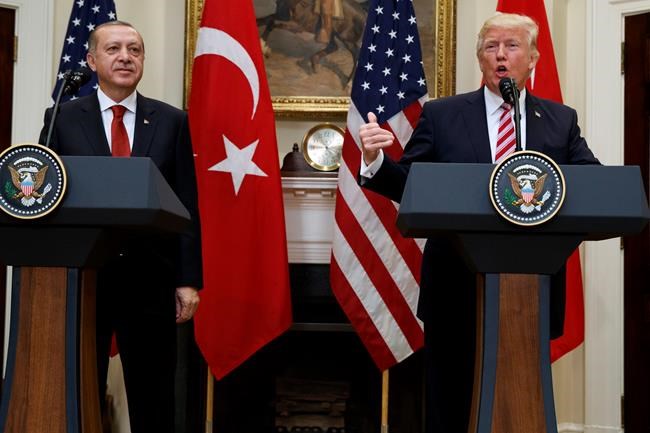 At their meeting Tuesday, Trump said the U.S. would re-establish its military and economic partnership with Turkey, committing to backing Turkey’s defence against both Islamic State and the PKK. Such groups will “have no safe quarter,” Trump said.
