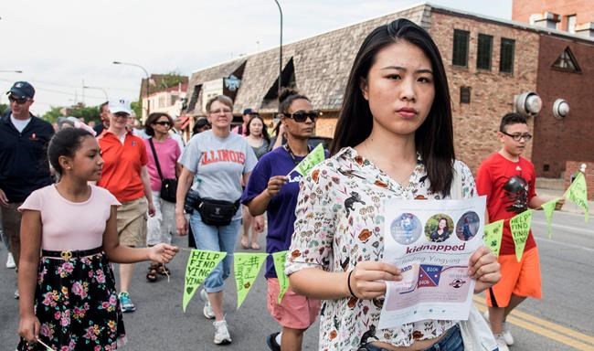 Authorities say Zhang was trying to hurry to an apartment to sign a lease and had been unsuccessful in flagging down a bus when a car stopped. The video shows a woman authorities have said is Zhang climb into the vehicle in Urbana, 140 miles (225 kilometres) southwest of Chicago.