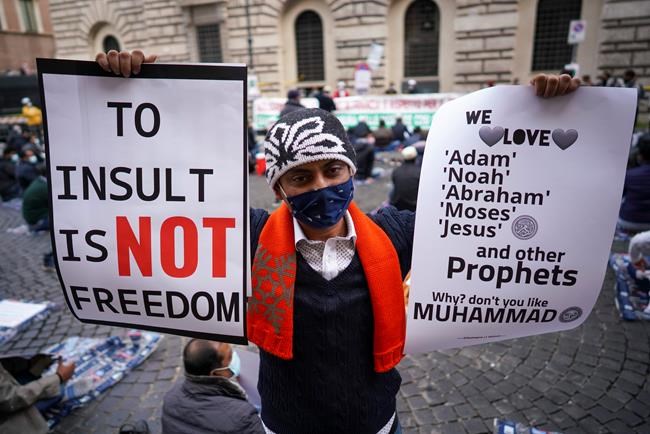 Macron has prompted angry protests and calls for boycotts of French products this past week from South Asia to the Mideast. He is accused of spreading anti-Muslim sentiment, notably while eulogizing the teacher who was decapitated near Paris, by defending the French right to caricaturize Islam’s Prophet Muhammad.