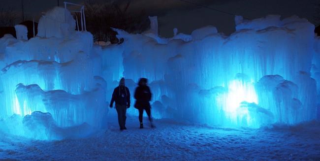 The castles, that have been under construction for weeks thanks to the continuing cold weather, include art that is made up of 25 million pounds of ice spiraling to heights around 40 feet. The ice also embedded with colour-changing LED lights set to a musical soundtrack.