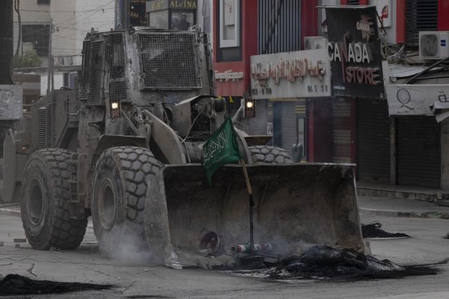 Associated Press journalists saw Israeli military vehicles and at least one armored bulldozer roaming Jenin’s empty streets on Wednesday, firing tear gas and live ammunition as Palestinians burned tires and threw stones.
