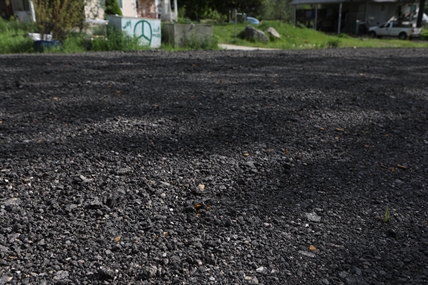 The recycled asphalt is old pavement from Highway 1 on the Trans Canada Highway, which runs adjacent to Neskonlith Indian Reserve numbers one and two in Secwepemcúl?ecw.