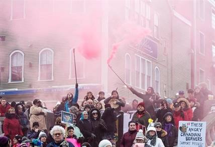 In Halifax, where a primary march took place in the morning, transgender and other activists walked through the event wafting pink smoke over the crowd before congregating at a separate event elsewhere in the city.
