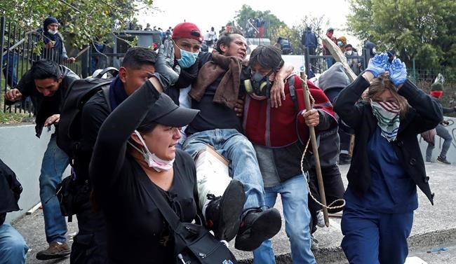 Earlier Tuesday, protesters broke through police barriers and some entered the empty congress building in Quito. Police fired tear gas and forced them to retreat.