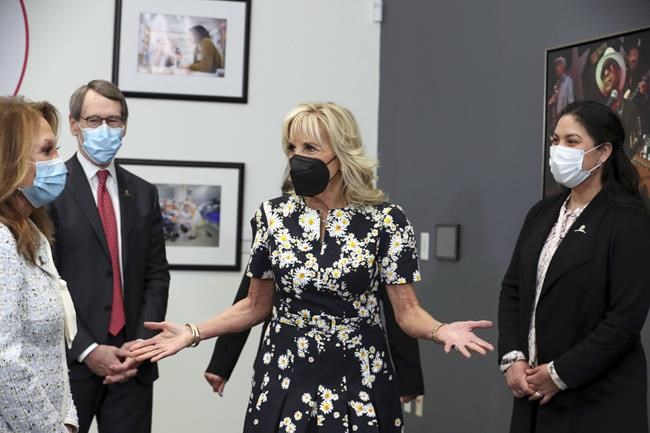 First lady Jill Biden visited the first group of arrivals at the hospital Friday.