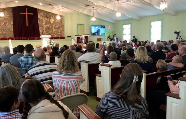 PLAINS, Ga. – Democratic presidential candidate Pete Buttigieg and his husband, Chasten, joined the large crowd at former President Jimmy Carter’s Sunday school class in rural South Georgia.