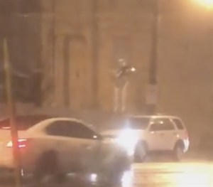 In a video circulated by local media, residents rushed toward a charred vehicle with a large plume of smoke. Civil Defense said its first responders transported an unnamed wounded person to a hospital.