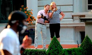 Mark and Patty McCloskey on Monday at the Republican National Convention reinforced the theme outlined in President Donald Trump’s campaign ads. The Republican is painting his opponent as complicit with rioting and violence that has taken place in some cities in recent months amid racial justice protests, the vast majority of which have been peaceful.