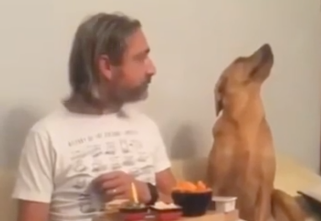 This patient pooch wants just a little bite of his owner's dinner, but refuses to be rude and watch someone else eat.