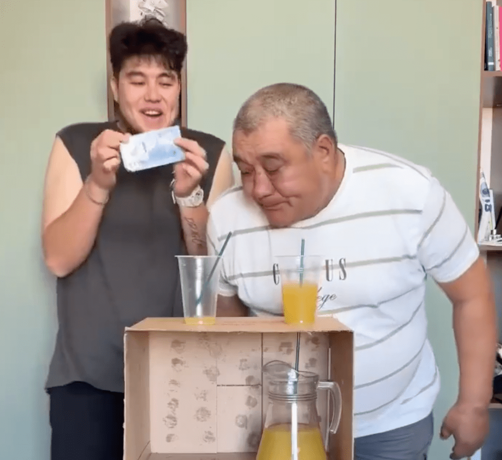 If only the dad knew what was hidden behind the cardboard box.