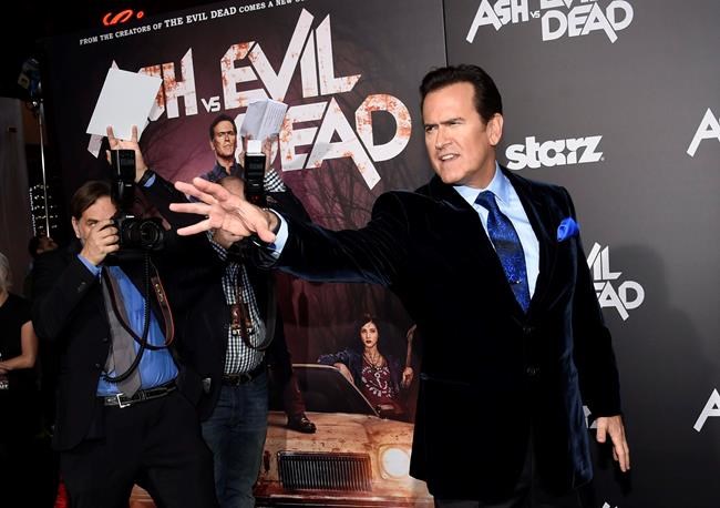 “Ash vs. Evil Dead” star Bruce Campbell is setting the record straight after he says a conservative Twitter account co-opted a photo of a bloody makeup test for one of his co-stars.