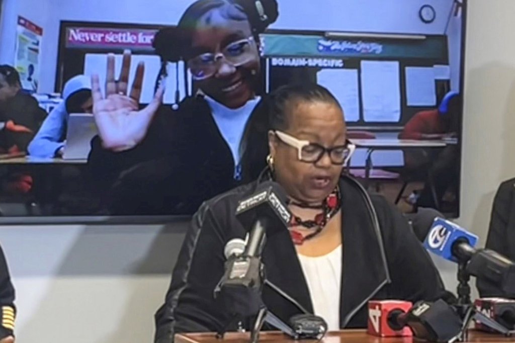The prosecutor talked to reporters while standing in front of a selfie taken by a smiling Na’Ziyah at school that same day.