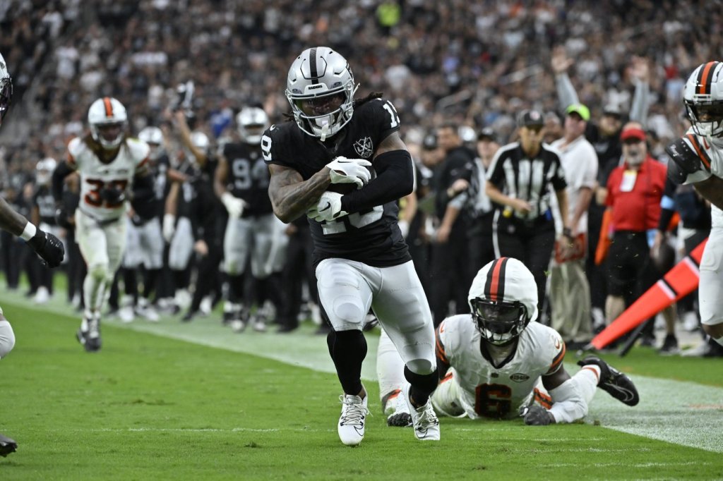 Wide receivers DJ Turner and Tre Tucker rushed for touchdowns, and tight end Brock Bowers had a 12-yard carry. That helped open up the game for running backs Alexander Mattison and Zamir White, who combined to rush for 110 yards on 22 carries in Las Vegas’ 20-16 victory over the Browns.