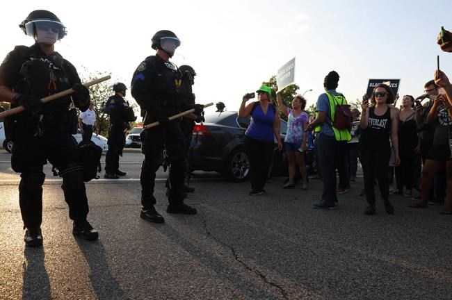 The St. Louis Post-Dispatch reports the protesters briefly blocked traffic near the southwest corner of Forest Park Thursday afternoon. Police formed a line to keep the protesters from walking onto Interstate 64.