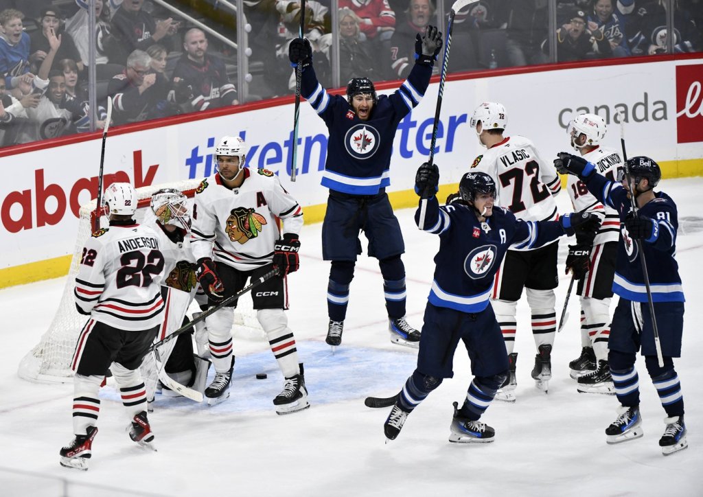 Defenceman Neal Pionk made a big play on the tying goal as he checked a Chicago forward carrying the puck into the Jets’ end with the net empty, not allowing him to get a shot off.