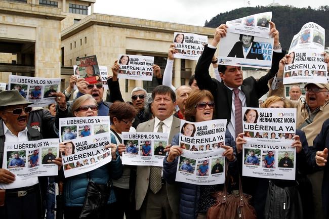 Dozens of people gathered in Colombia’s capital Wednesday to demand the safe return of Hernandez-Mora and the RCN journalists.