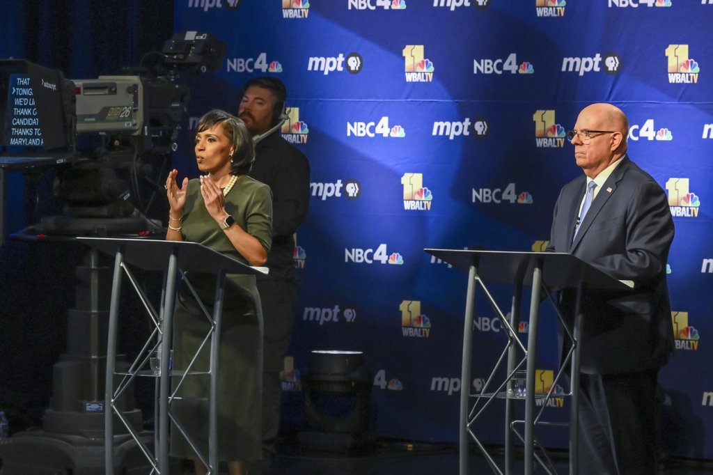 In the Senate race, Republican former Gov. Larry Hogan faces Democrat Angela Alsobrooks. Hogan and his GOP allies are spending more than $40 million to flip Democratic Sen. Ben Cardin’s open seat, according to AdImpact, which tracks ad spending. Alsobrooks won an expensive primary, and she and other Democratic groups have spent or reserved around $30 million in ads since the general election officially began. Cardin is retiring.