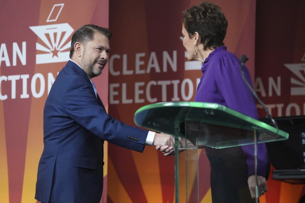 Other competitive contests include the race for U.S. Senate, where Democrat Ruben Gallego and Republican Kari Lake are running to replace outgoing independent U.S. Sen. Kyrsten Sinema, and two Republican-held U.S. House seats in Phoenix and Tucson area districts that both went for Biden in 2020.