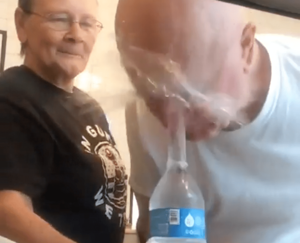 Her execution was perfect, giving him a good soaking.