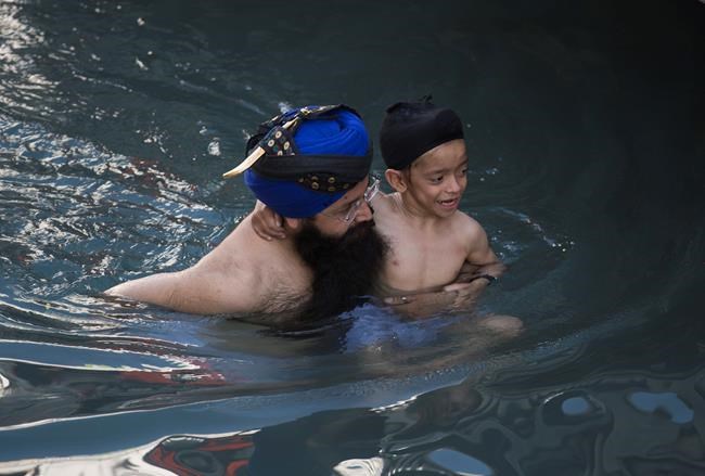 The festival commences with Sikhs bathing and worshipping at a sprawling pond at a temple in Hasanabdal, about 25 miles away from Islamabad. The Sikh women, wearing colorful dresses, then sing songs and dance to drum beats.