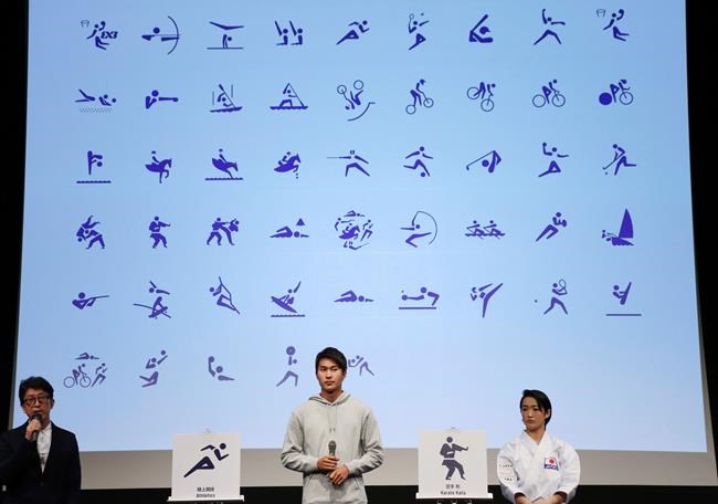 Japanese athletes posed with the pictograms and their designer, Masaaki Hiromura. Organizers also toured regions that will host Olympic events, including the area north of Tokyo that was devastated by a 2011 earthquake, tsunami, and resulting damage to nearby nuclear reactors.