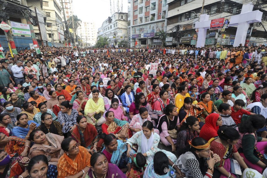 Friday’s protest in Chattogram was hastily organized after sedition charges were filed Wednesday against 19 Hindu leaders, including prominent priest Chandan Kumar Dhar, over an Oct. 25 rally in that city. Police arrested two of the leaders, angering Hindus.