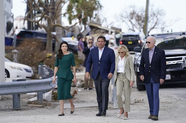 Biden toured some of Florida’s hurricane-ravaged areas on Wednesday, surveying damage by helicopter and then walking on foot alongside DeSantis. The Democratic president and Republican governor pledged to put political rivalries aside to help rebuild homes, businesses and lives.