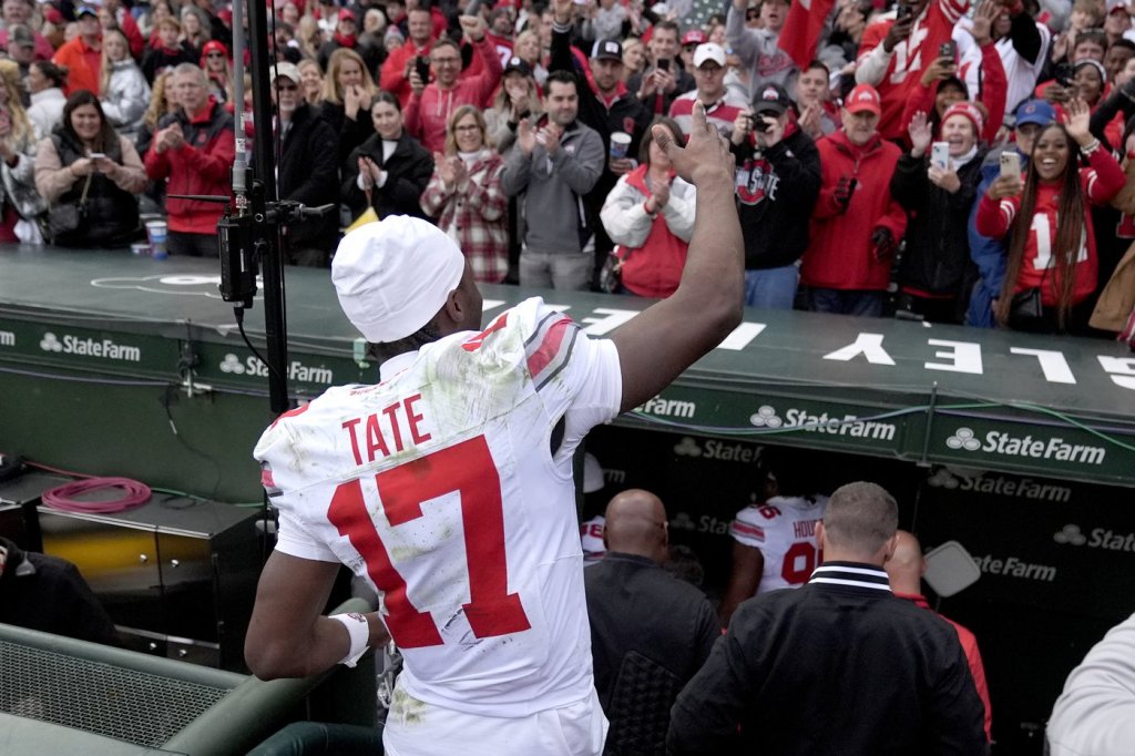 Tate celebrated his Chicago homecoming with two touchdown receptions during No. 2 Ohio State’s 31-7 victory over Northwestern on Saturday. The 6-foot-3 sophomore finished with four catches for 52 yards in the Buckeyes’ fourth consecutive victory.