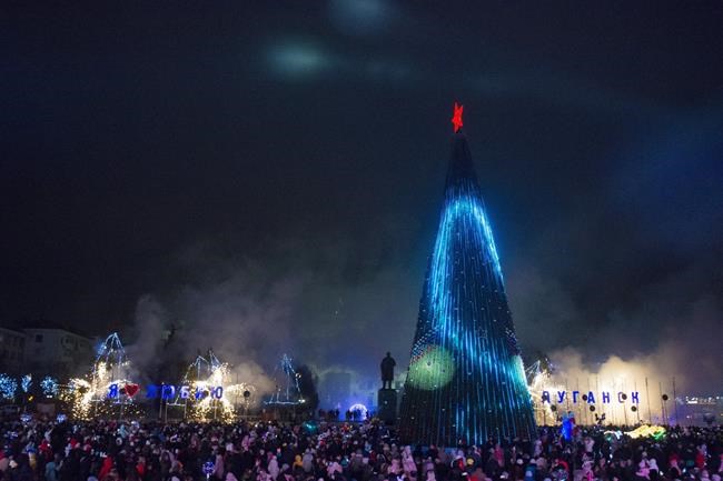 In stark contrast, in the Russian-occupied city of Luhansk, a large Christmas tree has been erected and on Friday evening people came out to admire its bright lights and watch entertainment, including dancers dressed in the colors of the Russian flag.