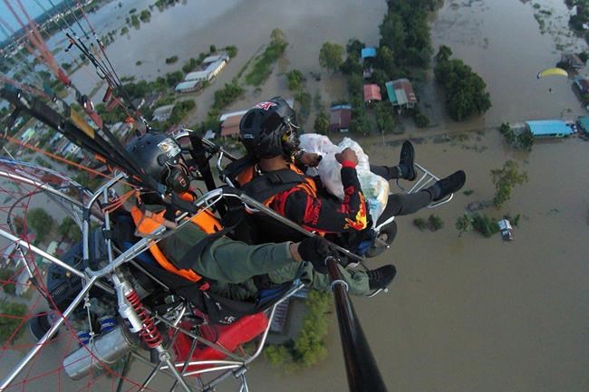 “We can arrive in the area quite fast,” volunteer Wichai Tiyasan told The Associated Press. “We can check out coordinates, leading rescue boats to locations that need help. We can use paragliders to drop supplies fast as we can reach affected areas well before others.”