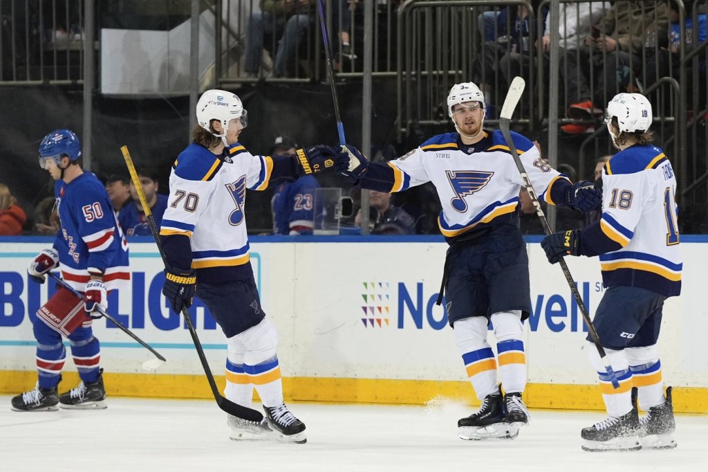 St. Louis downed the Rangers 5-2 on Monday night and played a spirited game from start to finish in Montgomery’s debut behind the bench, firing more than 40 shots at Rangers goaltender Igor Shesterkin. Forward Zack Bolduc scored his first two goals of the season for the Blues.