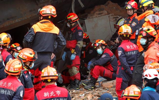 The Yunmen Tsuiti building was one of several damaged by late Tuesday’s magnitude 6.4 quake. At least four midsized buildings in worst-hit Hualien county leaned at sharp angles, their lowest floors crushed into mangled heaps of concrete, glass, iron and other debris. Firefighters climbed ladders hoisted against windows to reach people inside apartments.