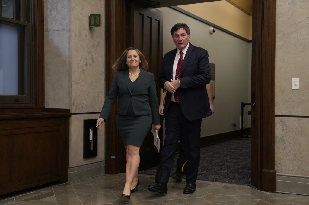 Unity among provinces and the federal government is critical in the face of the grave challenge posed by the threat of massive new import tariffs from Canada’s closest trading partner, Deputy Prime Minister Chrystia Freeland said Wednesday following an emergency first ministers’ meeting. The premiers met virtually Wednesday with Prime Minister Justin Trudeau, along with Freeland, Public Safety Minister Dominic LeBlanc and RCMP Deputy Commissioner Mark Flynn. The meeting came just 48 hours after U.S. president-elect Donald Trump said he will impose punishing new taxes on all Canadian and Mexican imports the same day he is sworn into office in January. Trump said he will keep the tariffs in place until both countries move to stem the flow of illegal migrants and drugs into the United States. Freeland said while Canada depends on the United States, the Americans are heavily dependent on Canada for oil, electricity and critical minerals and metals.