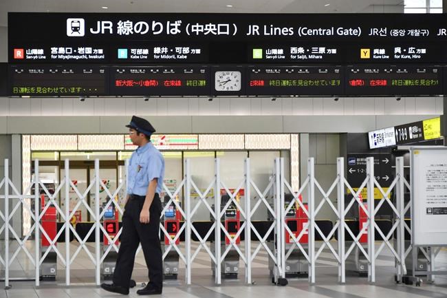 More than 7,000 people have moved to shelters in 21 prefectures in the western half of the Japanese archipelago. Bullet trains connecting Osaka and Kokura in the west were suspended Thursday, and hundreds of domestic flights grounded, holding up holidaymakers.