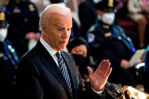 WASHINGTON – Federal prosecutors will not charge a police officer who shot and killed a woman as she climbed through the broken part of a door during the insurrection at the U.S. Capitol on Jan. 6, the Justice Department said Wednesday.