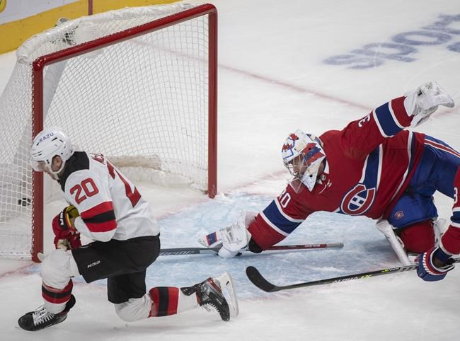 Micheal McLeod scored twice, a first for him since Jan. 31, 2021. Dawson Mercer, Nico Hischier, Jesper Boqvist and Tomas Tatar, on his first game back in Montreal, added goals.