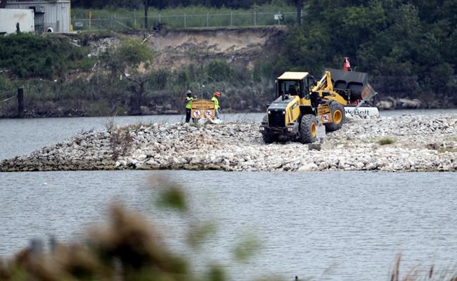 In its statement, EPA did not disclose precisely when the damage to the cap from Harvey was first discovered. AP observed a dive team working from a boat over an underwater section of the site on Sept. 13. Workers began using heavy machinery to add layers of rock to the cap the week after the storm.