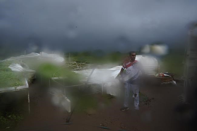 Electrical cables swayed and sent off showers of sparks in the town of El Rosario, about 40 miles (65 kilometers) south of Mazatlan, close to where the hurricane hit.