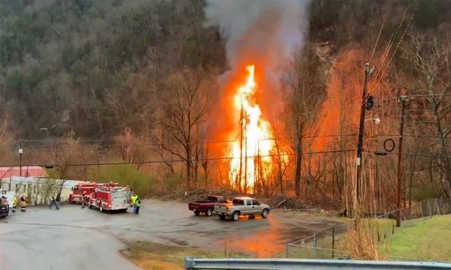 CSX said in a statement that the train derailed into the Big Sandy River about 7 a.m. because of a rock slide over the tracks. The derailment happened in the small Pike County community of Draffin, about 160 miles (255 kilometres) southeast of Lexington, Kentucky. Video showed a wooded area ablaze behind some homes shortly after the derailment occurred.