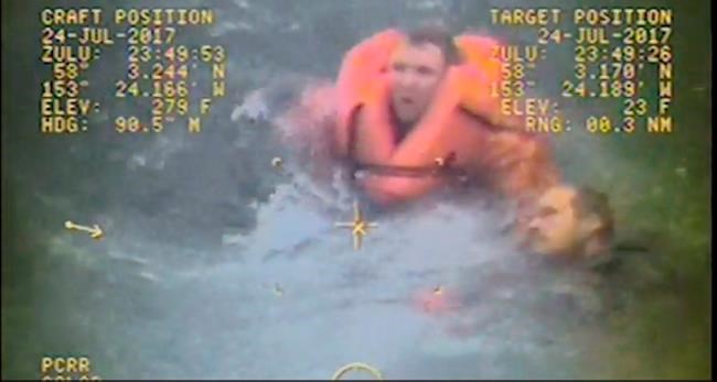 Coast Guard video of one of the rescues shows the captain in an orange life vest swimming to a man struggling to stay afloat and pulling him to an awaiting boat.