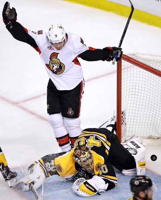 NOTES: Boucher said defenceman Mark Borowiecki, who missed Monday’s game with a lower body injury, remains day-to-day and could be available Wednesday . . . Boucher wasn’t aware of the debris that was thrown to the ice following Monday’s contest as he immediately headed down the tunnel . . . Ottawa defenceman Cody Ceci was still marvelling about captain Erik Karlsson’s “saucer pass” to Mike Hoffman for Monday’s first goal. “That was an incredible pass,” he said . . . After going 13 regular-season games without a goal, Ryan has scored twice in Ottawa’s three playoff games.