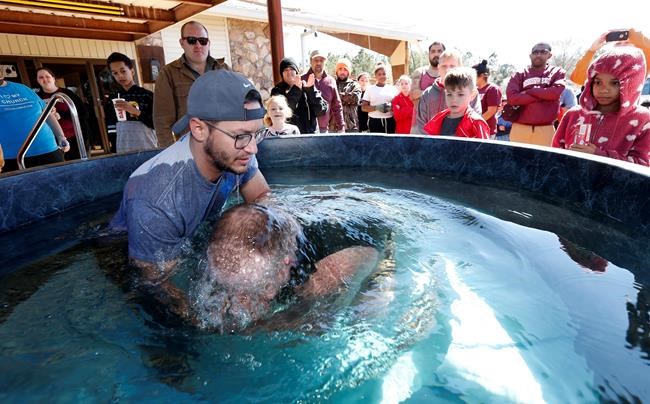 So they picked up whatever furnishings they could salvage and held a prayer service outdoors — complete with a baptism in a portable baptismal pool.