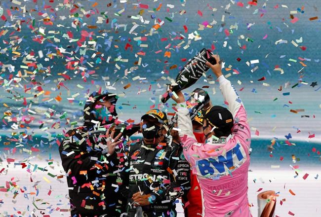 Hamilton placed about 30 seconds ahead of Racing Point’s Sergio Perez and Ferrari’s Sebastian Vettel, who overtook teammate Charles Leclerc for his first podium of a difficult season.