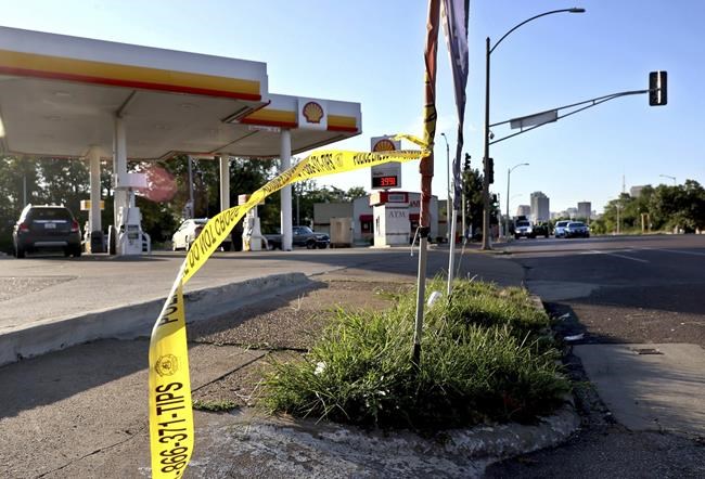 Police said two drug enforcement detectives spotted several people with guns at the service station and drove to the parking lot. Their car was unmarked and they were in plain clothes but wearing black, bulletproof vests with the word “POLICE” written on the front and back.